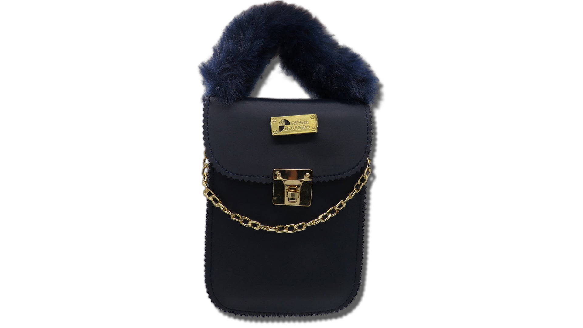 - Soft faux fur top handle for a cozy touch